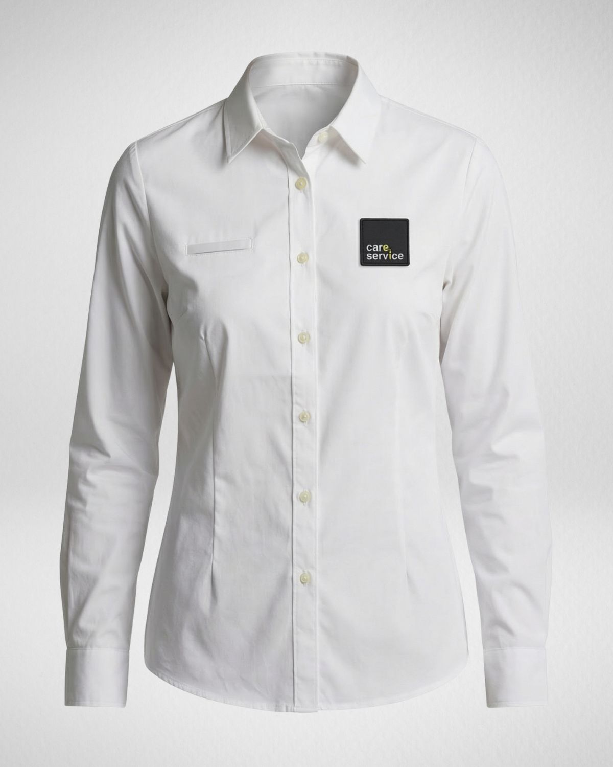 Sa coupe féminine moderne et structurée assure une allure élégante et professionnelle tout au long de la journée. La fermeture boutonnée intégrale apporte une tenue soignée et un confort optimal. La matière enrichie en spandex offre une élasticité maîtrisée qui accompagne naturellement les mouvements. Le patch en silicone apporte une signature contemporaine et un marquage résistant. Le col français renforcé affirme un style professionnel et intemporel.