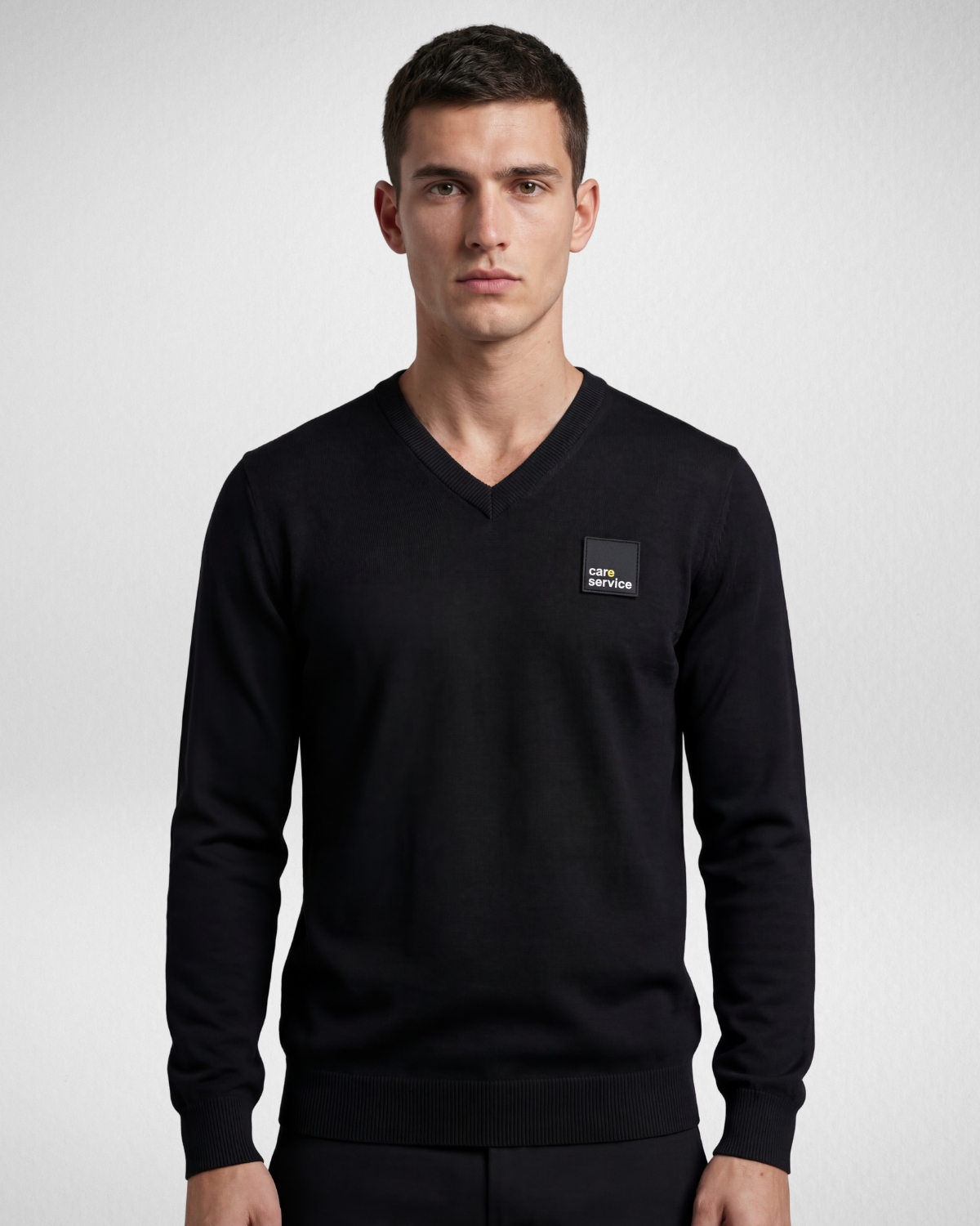 Sa coupe moderne et structurée garantit une silhouette nette et professionnelle, idéale pour un port quotidien. Le col V apporte une touche élégante et intemporelle, facilitant le port sur chemise ou polo. La maille confortable et respirante assure une excellente régulation thermique. Les finitions soignées aux poignets et à la taille garantissent une tenue impeccable. Le patch en silicone signe l'identité visuelle avec modernité et discrétion.
